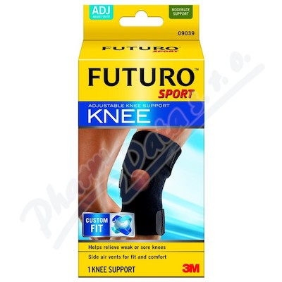 Nastavitelná kolenní bandáž FUTURO™ SPORT je určena k posílení a opoře při ztuhlosti a slabosti kolen nebo při jejich poranění. Přispívá také k ochraně před dalším zraněním.