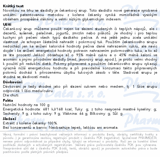 Novinkou na trhu se sladidly je čekankový sirup. Toto sladidlo nové generace vyrobené unikátní patentovanou metodou z kořene čekanky vyniká mimořádně vysokým obsahem prospěšné vlákniny a velmi nízkým glykemickým indexem.