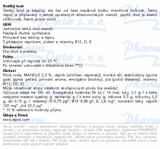 Sladký život je báječný, ale čas od času neuškodí trošku mandlové hořkosti. Tento nápoj je připravený z jemně upražených středomořských mandlí, jejichž chuť je esencí oříškovosti. Navíc je bez cukrů.