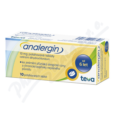 Léčivou látkou přípravku Analergin je cetirizin-dihydrochlorid.Analergin je přípravek proti alergiím. Přípravek se používá ke zmírnění nosních a očních příznaků sezónní a celoroční alergické rýmy; ke zmírnění příznaků chronické kopřivky nejasného původu. Čtěte pozorně příbalový leták.