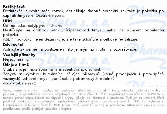 Dezinfekční a revitalizační roztok, dezinfikuje drobná poranění, revitalizuje pokožku po štípnutí hmyzem; ošetření nepálí.