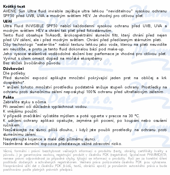 AVENE Sun Ultra fluid invisible zajišťuje ultra lehkou "neviditelnou" vysokou ochranu SPF50 před UVB, UVA a modrým světlem HEV. Je vhodný pro citlivou pleť.