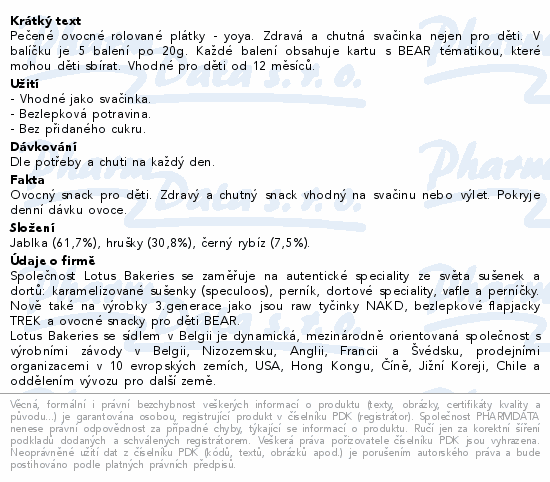 Pečené ovocné rolované plátky - yoya. Zdravá a chutná svačinka nejen pro děti. V balíčku je 5 balení po 20g. Každé balení obsahuje kartu s BEAR tématikou, které mohou děti sbírat. Vhodné pro děti od 12 měsíců.