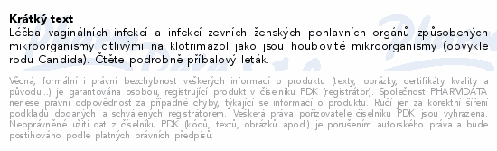 Farmakoterapeutická skupina: Gynekologická antiinfektiva a antiseptika - Imidazolové deriváty - Klotrimazol