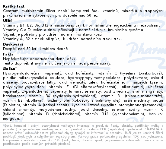 Centrum multivitamín Silver nabízí kompletní řadu vitamínů, minerálů a stopových prvků speciálně vytvořených pro dospělé nad 50 let.