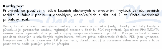 Přípravek se používá k léčbě kožních plísňových onemocnění (mykóz), zánětu zevních rodidel a žaludu penisu u dospělých, dospívajících a dětí od 2 let. Čtěte pozorně příbalový leták.
