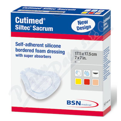 Cutimed® Siltec® Sacrum je neadhesivní polyuretanová pěna se silikonem a superabsorpčním jádrem. Chrání čerstvou granulaci a superabsorbenty přitom vstřebávají střední až vysokou sekreci. Krytí může zůstat dle stavu rány přiložené až 7 dní.
