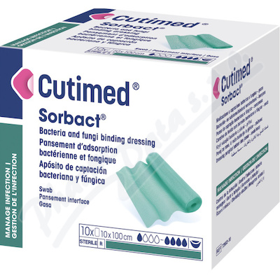 Cutimed Sorbact je antimikrobiální krytí. Odstraní baktérie a další mikroorganismy z kontaminovaných nebo infikovaných ran s exsudátem. Je vyroben z tkanin potažených dialkylkarbamoylchloridem (DACC), látkou zajišťující účinnou absorpci mikroorganismů.