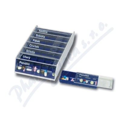 Týdenní dávkovač MAXI na léky s vyjímatelnými denními boxy, pojmenovanými jednotlivými dny v týdnu. Každý box je rozdělen na 4...