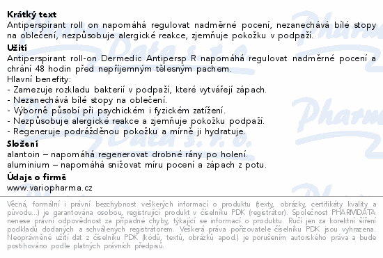 Antiperspirant roll on napomáhá regulovat nadměrné pocení, nezanechává bílé stopy na oblečení, nezpůsobuje alergické reakce, zjemňuje pokožku v podpaží.