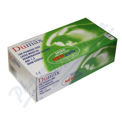 Dumax jsou vyšetřovací, latexové, nesterilní a nepudrované rukavice velikosti XL, dodávány v balení po 100ks.