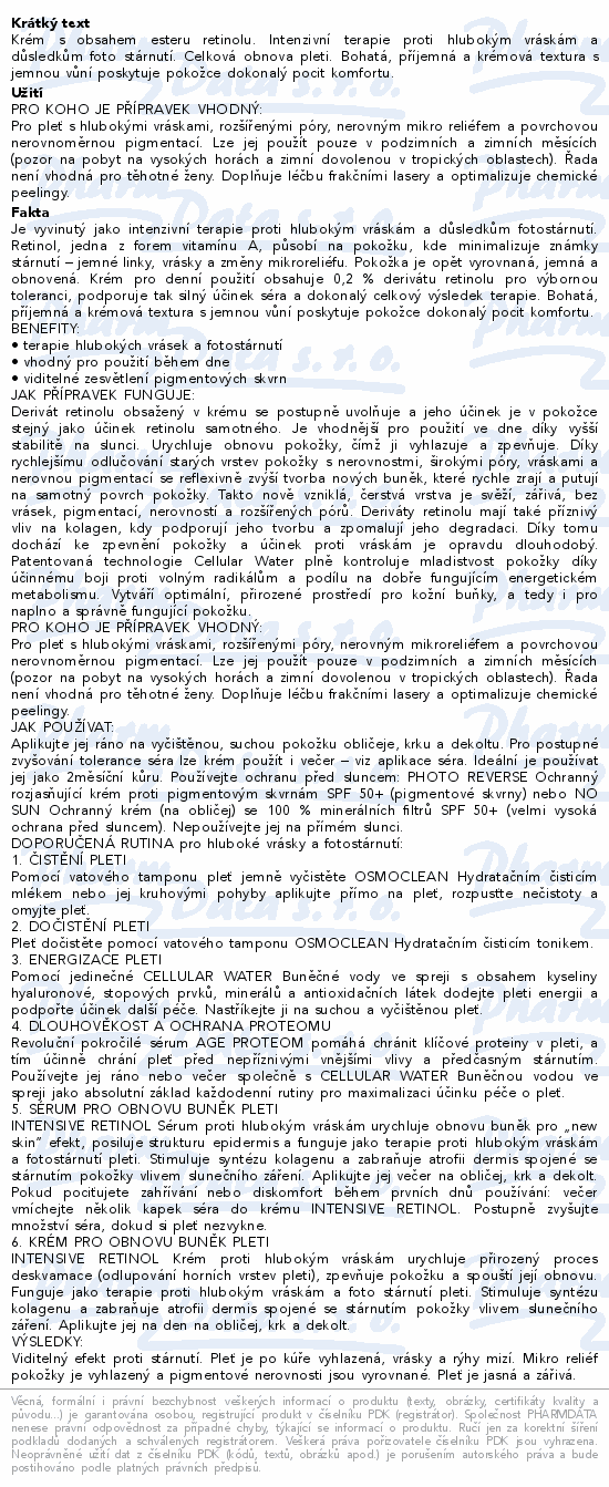 Krém s obsahem esteru retinolu. Intenzivní terapie proti hlubokým vráskám a důsledkům foto stárnutí. Celková obnova pleti. Bohatá, příjemná a krémová textura s jemnou vůní poskytuje pokožce dokonalý pocit komfortu.