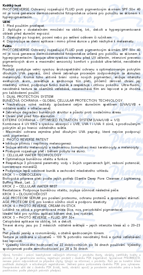 PHOTOREVERSE Ochranný rozjasňující FLUID proti pigmentovým skvrnám SPF 50+ 40 ml je nová generace dermokosmetické fotoprotekce určená pro pokožku se sklonem k hyperpigmentacím.