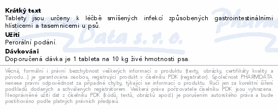 Tablety jsou určeny k léčbě smíšených infekcí způsobených gastrointestinálními hlísticemi a tasemnicemi u psů.