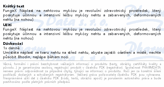 FungeX Náplast na nehtovou mykózu je revoluční zdravotnický prostředek, který poskytuje účinnou a intenzivní léčbu mykózy nehtu a zabarvených, deformovaných nehtu (na nohou).