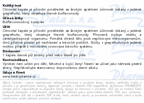 Citrovital kapsle je přírodní prostředek se širokým spektrem účinnosti získaný z jadérek grapefruitu, který obsahuje hlavně bioflavonoidy.