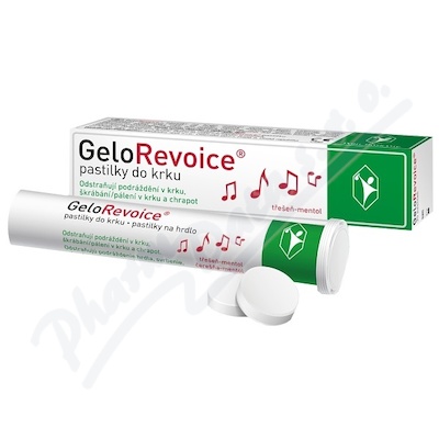 GeloRevoice pastilky do krku chrání sliznici úst a krku. Používají se k odstranění příznaků, jako jsou chrapot, škrábání