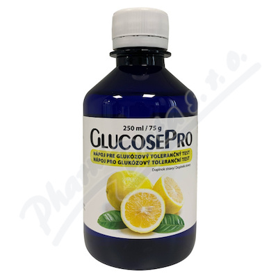Nápoj GlucosePro slouží k orálnímu glukózovému tolerančnímu testu (oGTT) . Řešení vhodné při podezření na Diabetes Mellitus, gestační diabetes nebo při glukózové intoleranci. Splňuje všechny požadavky WHO na orální test glukózové tolerance.