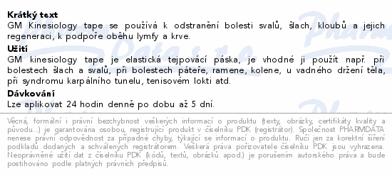 GM Kinesiology tape se používá k odstranění bolesti svalů, šlach, kloubů a jejich regeneraci, k podpoře oběhu lymfy a krve....