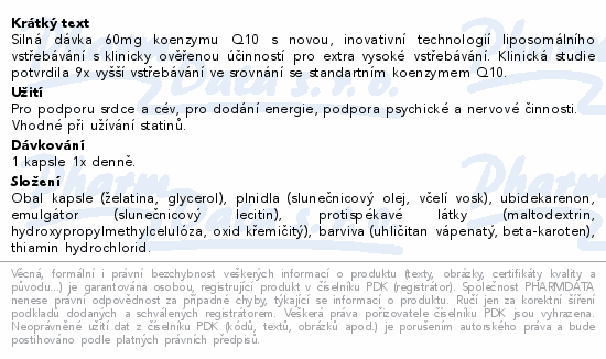Silná dávka 60 mg koenzymu Q10 s novou, inovativní technologií liposomálního vstřebávání s klinicky ověřenou účinností pro...