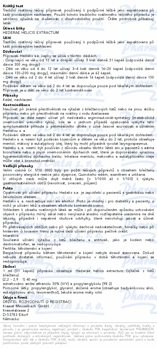 Tradiční rostlinný léčivý přípravek používaný k podpůrné léčbě jako expektorans při kašli provázejícím nachlazení. Použití tohoto tradičního rostlinného léčivého přípravku je založeno výlučně na zkušenosti z dlouhodobého použití. Čtěte pozorně příbalový leták.