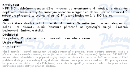 HiPP BIO Jablečno-hroznová šťáva, vhodná od ukončeného 4. měsíce, je důležitým doplňkem mléčné stravy. Se sníženým obsahem alergenních složek. Bez přídavku cukrů (obsahuje přirozeně se vyskytující cukry). Přirozeně bezlepková. V BIO kvalitě.
