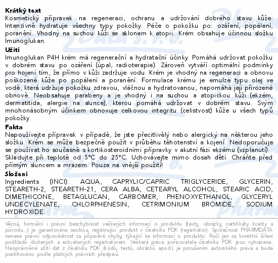 Kosmetický přípravek na regeneraci, ochranu a udržování dobrého stavu kůže. Intenzivně hydratuje všechny typy pokožky. Péče o pokožku po: ozáření, popálení, poranění. Vhodný na suchou kůži se sklonem k atopii. Krém obsahuje účinnou složku Imunoglukan.