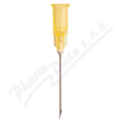 Injekční hypodermická podkožní jehla pro jedno použití s velimi ostrým hrotem. Balená jednotlivě v odlišném barevném blistru.