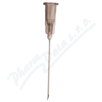 Injekční hypodermická podkožní jehla pro jedno použití s velimi ostrým hrotem. Balená jednotlivě v odlišném barevném blistru.