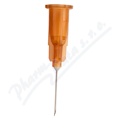 Injekční hypodermická podkožní jehla pro jedno použití s velimi ostrým hrotem. Balená jednotlivě v odlišném barevném blistru.