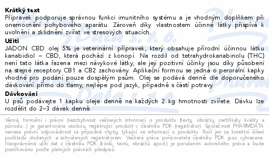 Přípravek podporuje správnou funkci imunitního systému a je vhodným doplňkem při onemocnění pohybového aparátu. Zároveň díky vlastnostem účinné látky přispívá k uvolnění a zklidnění zvířat ve stresových situacích.