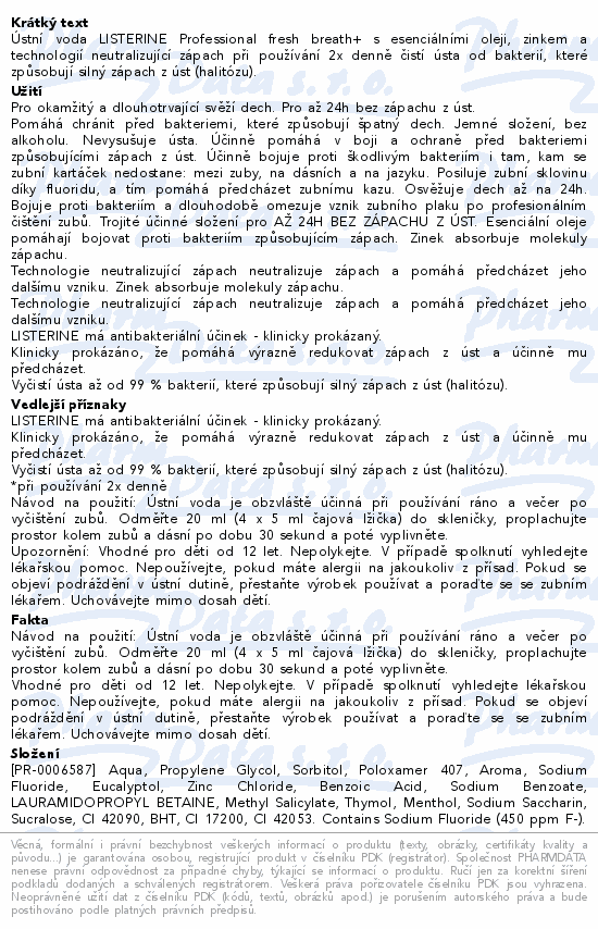 Ústní voda LISTERINE Professional fresh breath+ s esenciálními oleji, zinkem a technologií neutralizující zápach při používání 2x denně čistí ústa od bakterií, které způsobují silný zápach z úst (halitózu).