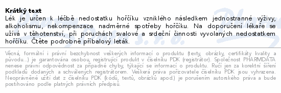 Přípravek je určen k léčbě nedostatku hořčíku vzniklého následkem jednostranné výživy, alkoholismu nebo nedostatečné...