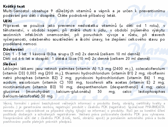 Multi-Sanostol obsahuje 9 důležitých vitamínů a vápník a je určen k preventivnímu podávání pro děti i dospělé. Čtěte pozorně příbalový leták.