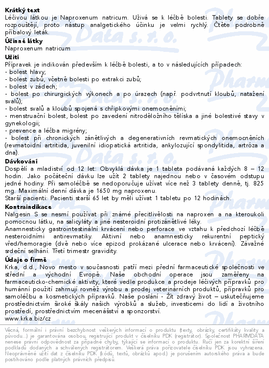 Léčivou látkou je Naproxenum natricum. Uživá se k léčbě bolesti. Tablety se dobře rozpouštějí, proto nástup analgetického...
