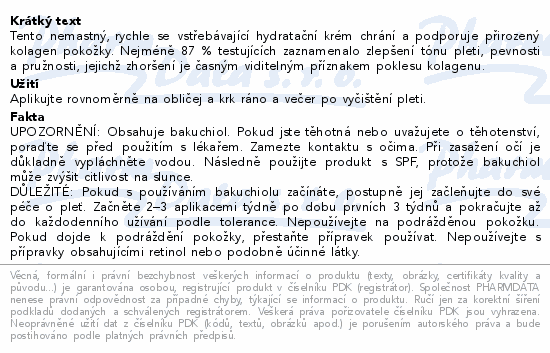 Tento nemastný, rychle se vstřebávající hydratační krém chrání a podporuje přirozený kolagen pokožky. Nejméně 87 % testujících zaznamenalo zlepšení tónu pleti, pevnosti a pružnosti, jejichž zhoršení je časným viditelným příznakem poklesu kolagenu.