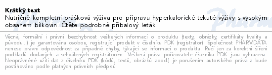Nutričně kompletní prášková výživa pro přípravu hyperkalorické tekuté výživy s vysokým obsahem bílkovin. Čtěte pozorně příbalový leták.