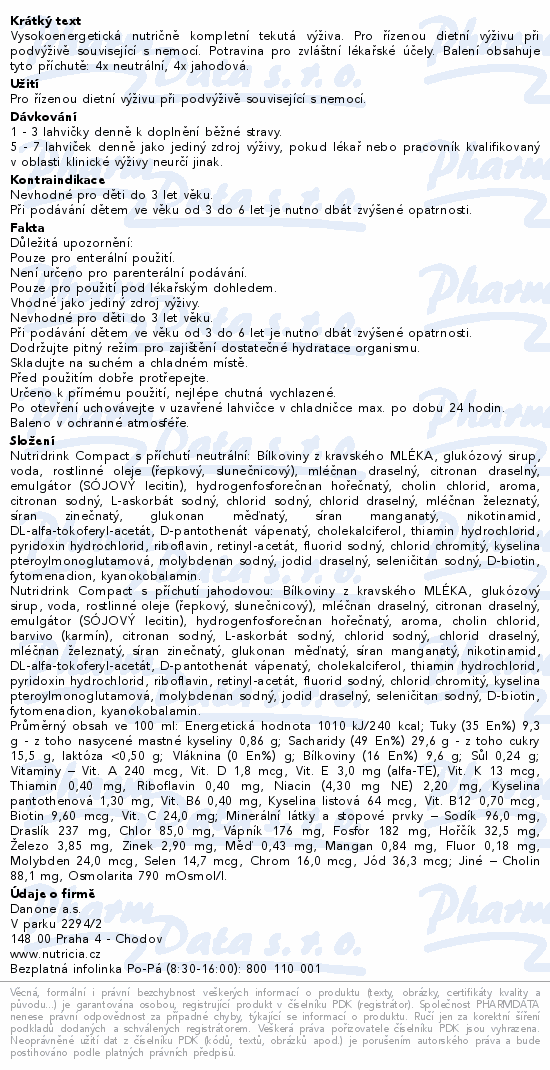 Nutridrink Compact je vysokoenergetická nutričně kompletní tekutá výživa. Potravina pro zvláštní lékařské účely. Pro...