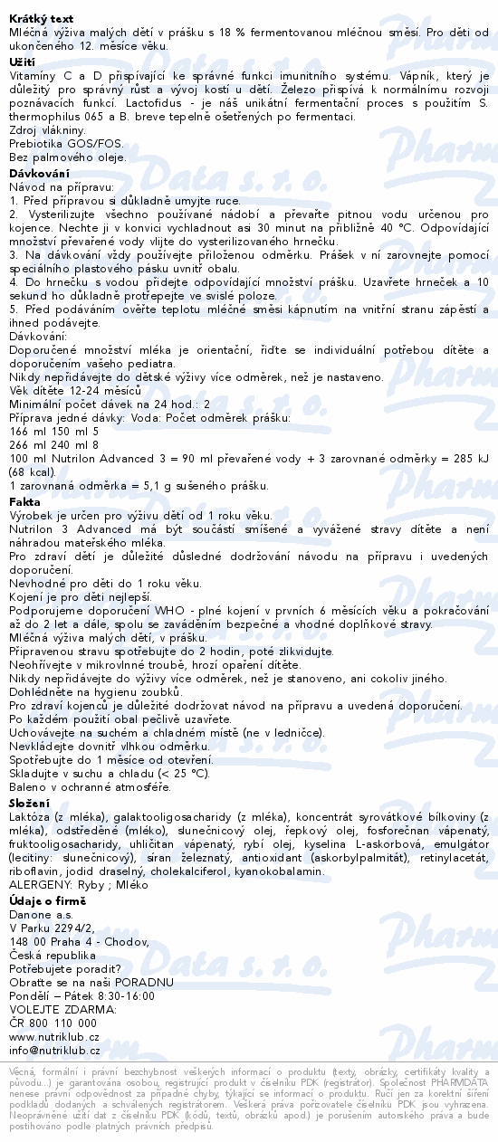 Mléčná výživa malých dětí v prášku s 18 % fermentovanou mléčnou směsí. Pro děti od ukončeného 12. měsíce věku.