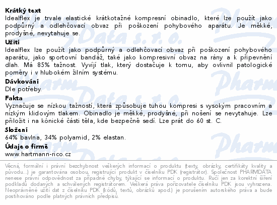 Idealflex je trvale elastické krátkotažné kompresní obinadlo, které lze použít jako podpůrný a odlehčovací obvaz při poškození pohybového aparátu. Je měkké, prodyšné, nevytahuje se.