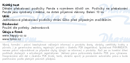 Panda dětské přebalovací podložky 60x60cm 10ks