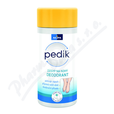 Pedik DEO zásyp na nohy obsahuje ricinolen zinečnatý, který chemicky váže pach, vznikající nadměrným pocením nohou. Zásyp má příjemnou levandulovou vůni.