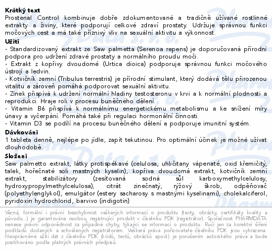 Prostenal Control kombinuje dobře zdokumentované a tradičně užívané rostlinné extrakty a živiny, které podporují celkové zdraví...