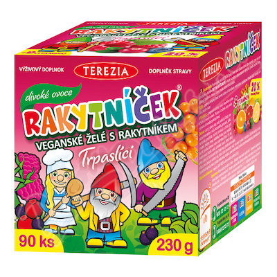 Nové veganské želé RAKYTNÍČEK Trpaslíci divoké ovoce obsahují účinnou látku rakytník a směs ovocných koncentrátů a vitaminy.