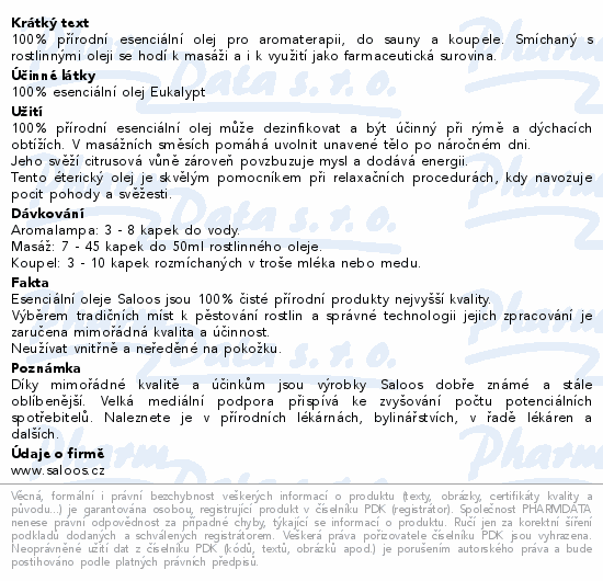 Saloos Eukalyptus citriodora esenciální olej 10ml