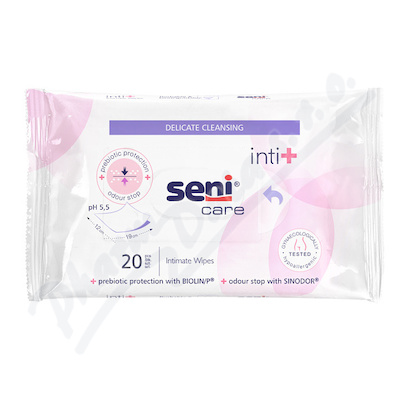 Intimní vlhčené ubrousky Seni Care Inti+ jsou určené k jednoduché a rychlé hygieně intimních míst i při inkontinenci. Obsah SINODOR neutralizuje nepříjemný zápach, komplex BIOLIN