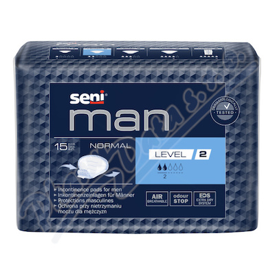 Anatomicky tvarované, trojúhelníkové inkontinenční vložky Seni Man Light Level 1 pro kapénkovou inkontinenci. Upevnění ke...