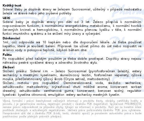 Sideral Baby je doplněk stravy se železem Sucrosomial, užitečný v případě nedostatku železa ve stravě nebo jeho zvýšené potřeby.