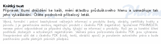 Přípravek tlumí dráždění ke kašli, mění skladbu průduškového hlenu a usnadňuje tak jeho vykašlávání. Čtěte pozorně...