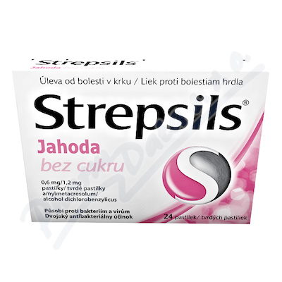 Pastilky Strepsils Jahoda bez cukru obsahují léčivé látky dichlorbenzylalkohol a amylmetakresol, které mají antiseptické účinky a ničí bakterie, viry a kvasinky způsobující bolest a záněty v dutině ústní a hltanu. Čtěte pozorně příbalový leták.